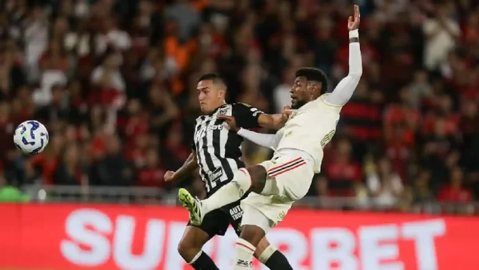 O primeiro tempo foi bastante equilibrado, com o Flamengo controlando a posse de bola e o Atlético explorando os contra-ataques. O Mais Querido teve boas chances, como um chute de Evertton Araújo que explodiu no travessão. Do lado mineiro, Hulk e Cuello protagonizaram os principais lances ofensivos, mas também pararam na defesa adversária ou na falta de pontaria.