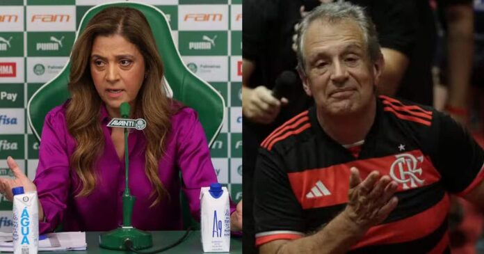 Leila Pereira, presidente do Palmeiras, cutuca presidente do Flamengo em entrevista ao programa Esporte S/A, da CNN, em resposta ao discurso de Luiz Eduardo Baptista que havia declarado que o time carioca “não era idiota” para abrir mão de dinheiro para a criação de uma liga no futebol brasileiro. Entenda o contexto:
