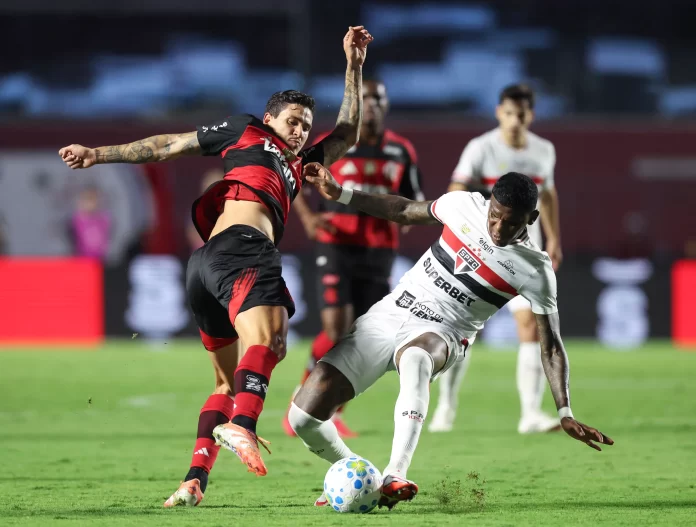 O Flamengo foi derrotado, por 2 a 1, em sua estreia pelo Campeonato Brasileiro pelo tricolor paulista, no Morumbis, com mais uma arbitragem polêmica do árbitro Wilton Pereira Sampaio que deixou de marcar pênalti claro de Alan Franco sobre Arrascaeta.