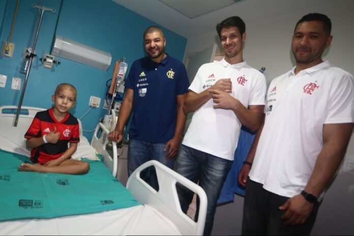 O elenco de basquete do Flamengo fez várias cestas de três pontos fora das quadras, visitando o hospital o Hospital Estadual da Criança, no Rio de Janeiro, nesta quarta-feira (27).